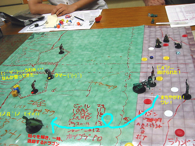 エルギアンはドラゴンをこかせようとグリースの呪文を唱えますが、