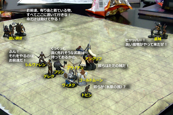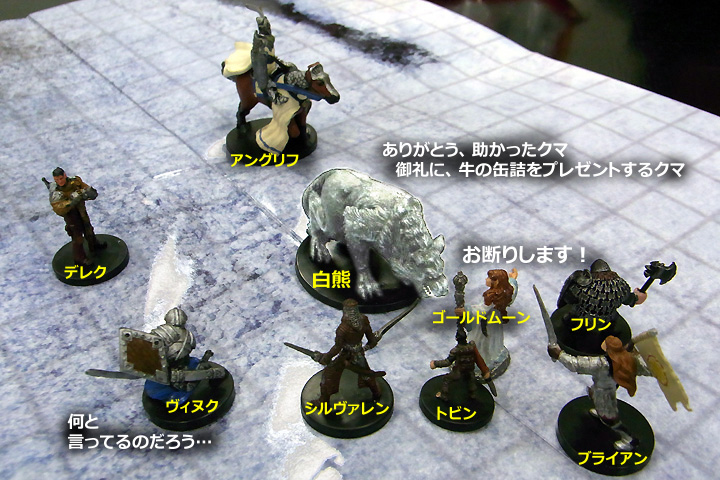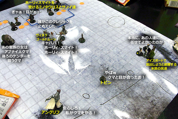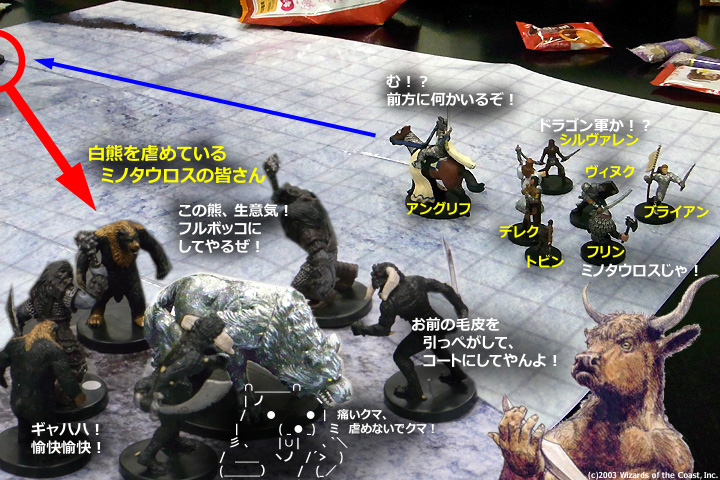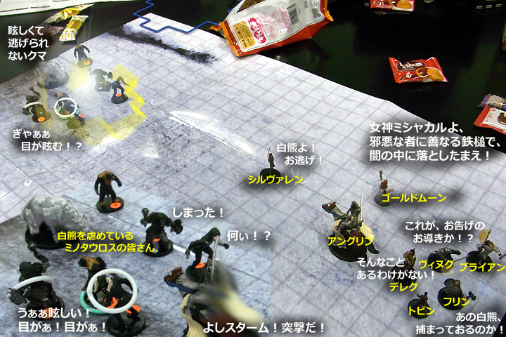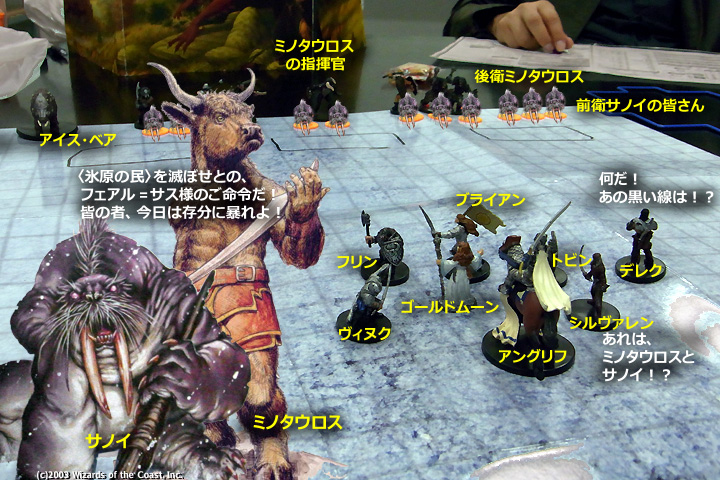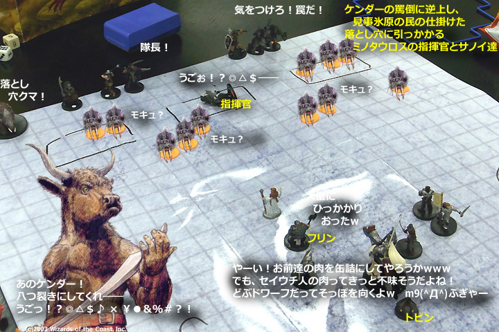 DM「ミノタウロス指揮官1体、ミノタウロス4体、アイス・ベア1体、サノイ4体ですね」