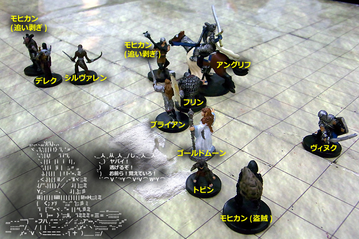 ヴィヌク「ではブライアンも入るけど、サノイ4体にミノタウロス3体が入るこの範囲で。意思セーヴ難易度16。ダメージ17点」